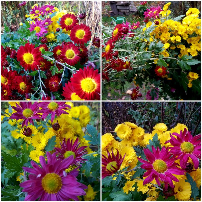 Ich hatte im letzten Spätherbst einen Baueimer voll von dieser Chrysantheme auf dem Friedhofsmüll gefunden. Noch nicht ganz verblüht, die Triebe 1,20 m hoch. Die Stücke habe ich im Topf frostfrei überwintert und im Frühjahr an drei Stellen ausgepflanzt. Nun blühen sie, obwohl die Schnecken im Frühling dran waren.