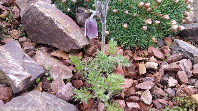 mit der samenechtheit auch aus den seedexchanges der ags oder srgc ist es leider manchmal nicht weit her, gerade bei Pulsatilla, aber bei der scheint dringewesen zu sein, was auf dem tütchen stand...Pulsatilla cernua, samengezogen, heuer erstmals blühend. leider hatte nur ein einziges samenkorn gekeimt. P. cernua hat ein weites verbreitungsgebiet im fernen osten (china, mongolei, japan, korea, sibirien). sieht fast wie eine westeuropäische P. rubra aus, aber das blatt ist grobfiedriger und der blütenstängel kürzer und seitlich gerichtet im aufblühen. zum vergleich hier eine cernua aus japan.