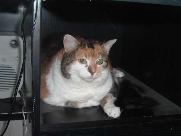 Hier noch ein Bild von unserer "Wawuschel", die im Frühjahr von einem Auto angefahren wurde.Mit ihr war ich in den letzten 4 Jahren Dauergast beim Tierarzt. Deshalb wollte ich persönlich eigentlich keine Katze mehr, obwohl ich sie sehr mag.