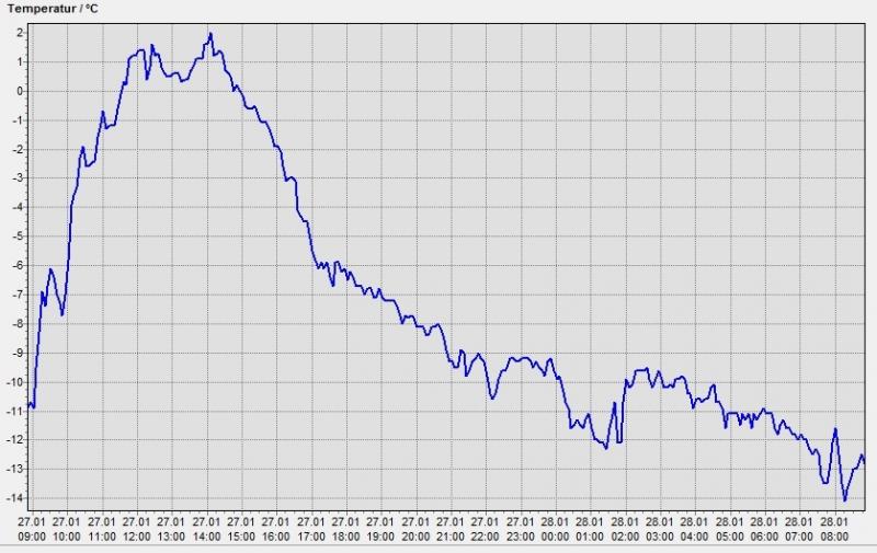 Momentan -7,8°C, bedeckt !Schneehöhe ca.15cm. Hier soll es nun auch ab morgen milder werden. Die Wetterstation zeigt Montag Nachmittag "Regen",aber Nachts dann immer noch -5°C. Schlecht für die Straßen,Blitzeis, Glatteisgefahr ::). Mal schaun!