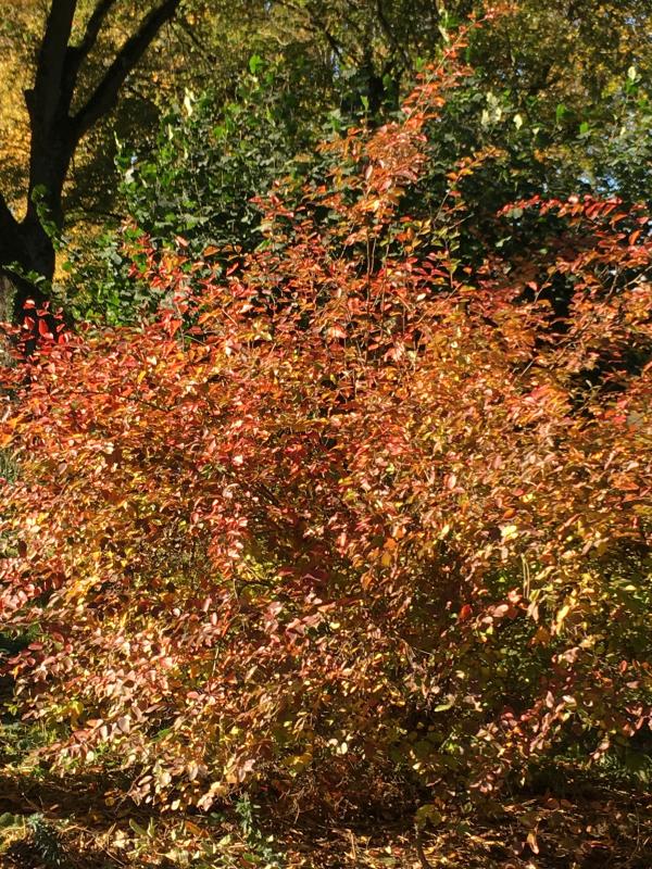 Dieser Busch hier leuchtet dagegen schon seit einigen Wochen und das Herbstlaub hat auch den Sturm von Mittwoch sehr gut überstanden: