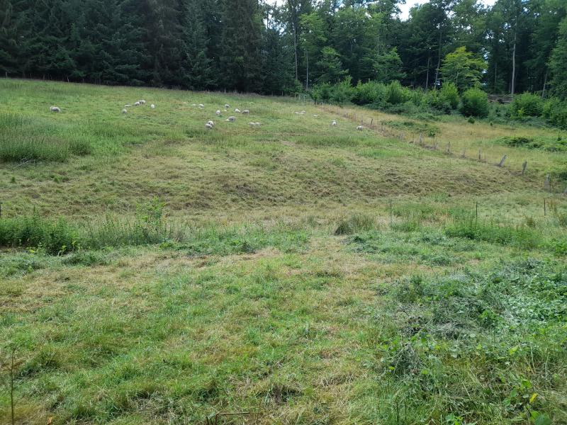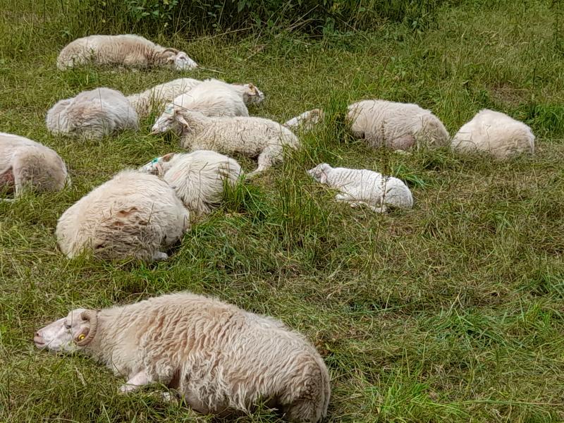 Zu den erfreulicheren Taten: Riepenbachfläche ust nun ganz gezäunt. Allerdings ist die Üdülle trügerisch. A) meckern sogar die Schafe wegen aller Arten Bremsen. Nun haben die meisten schon wieder gut Wolle, die sie schützt. Eine steckte das Gesicht in die Brennnesseln. Andere rammten es bei der Kollegin in die Wolle. Andere motzten vor sich hin. Ich motzte mit. Also das Spray, was mir die Dinger vom Leib hält, muss noch erfunden werden. Die kannste direkt ansprühen. Interessiert die nicht. Und wenn mir bei den Temperaturen der Schweiss imHang läuft hält eh kein Spray. :P
