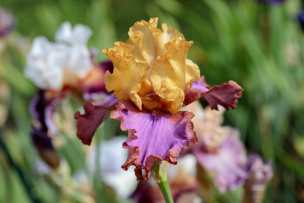 In Novas Hausgarten steht z. B. noch eine als "Tide´s in" Bezeichnete und hier noch zwei drei "nicht Silverado", die in dieselbe Richtung gehen: Alle hoch, mit hellem/weißem Bart, relativ schlichter Form und zarten dunkleren/bräunlichen Strichen am Schlund.
