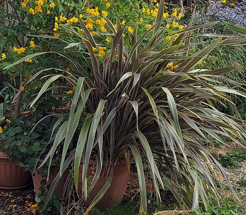 Bei den meisten Phormium hängen die Blätter seitlich mal mehr, mal weniger über.