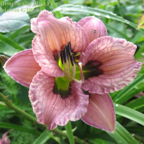 am tollsten war aber am Morgen die Bläue des Auges, das Blaueste, das ich bisher an einer Taglilie gesehen habe. Leider hat das Foto eine geringe Tiefenschärfe, aber die Farbe ist doch zu erkennen und ich habe nicht daran manipuliert