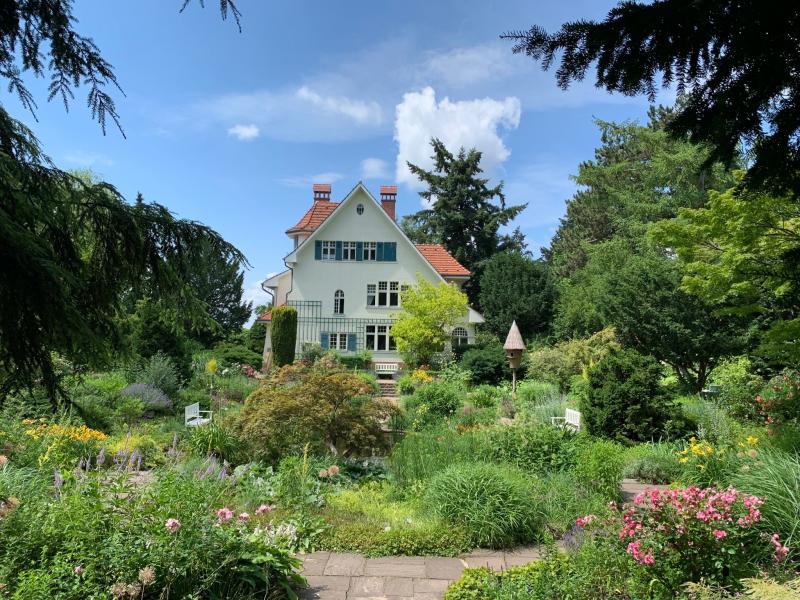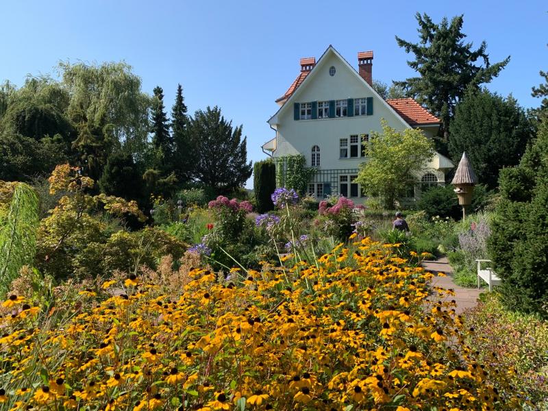 Ein Blick auf das Haus vom Herbstbeet aus.