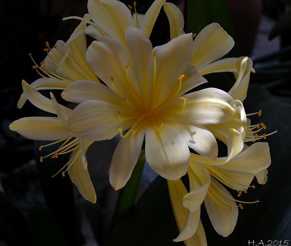 Tomir (und natürlich auch alle andern Klivien-Fans),ich habe mir Dein Bild noch einmal genauer angeschaut. Auch wenn es sich nach Deiner Aussage „nur“ um die als „Vanilla Strength of Africa“ handelt, hat die von Dir besuchte Gärtnerei im Vergleich zu den Gärtnereien, die ich bisher hier in Deutschland gesehen habe, eine sehr stattliche Anzahl von dieser gelb blühenden Klivie im Angebot. Das hängt sicherlich damit zusammen, dass man in der Klimazone 10a die Pflanzen als Gartenpflanze halten kann. Deshalb wird sie dort sicherlich häufiger angeboten und gekauft. Da die Pflanzen in Belgien durch Samen vermehrt werden, variieren diese in Bezug auf verschiedene Merkmale. Wenn man Glück hat und genau zur richtigen Zeit anwesend ist, werden hier in Deutschland in einigen großen Gartencentern (z B. Kölle oder Dehner) vielleicht sechs gelbblühende Pflanzen angeboten. Die meisten Gärtnereien und Gartencenter führen lediglich die orange blühenden Klivien, wenn überhaupt. Das hängt damit zusammen, dass wir Klivien in frostsicheren Räumen möglichst um die 10 °C überwintern müssen. Die Nachfrage ist nicht so groß, da viele Pflanzenliebhaber diese Bedingungen heute nicht mehr erfüllen können.Zum nächsten Dehner-Gartencenter muss ich ca. 140 km hin und zurück fahren. Das mache ich nur äußerst selten. Wenn ich in der Nähe wohnen würde, wäre es natürlich einfacher, immer wieder nachzuschauen, ob doch die eine oder andere Klivie besondere und für mich interessante Merkmale aufweist. Auch bei den orange blühenden Klivien gibt es immer wieder einmal Exemplare, die aus der breiten Masse herausragen. Je nach Wohnort ist es aber sehr schwierig, genau zur richtigen Zeit bei bestimmten Gärtnereien zur Stelle zu sein. Wenn ich bei den normalen Blumenläden und Gärtnereien in meiner Wohngegend nachgefragt habe, bekam ich immer einen negativen Bescheid.Ich habe bei meinem letzten Dehner-Besuch gesehen, dass die dort als „Yellow Star“ angebotenen gelb blühenden Klivien von der belgischen Firma Id’Flor stammen und der „Vanilla Strength of Africa“ entsprechen. Die vor vielen Jahren von mir dort gekaufte „Yellow Star“ sieht vollkommen anders aus in Bezug auf den Habitus und die Blütenform. Meine aus Samen angezogene Klivie, die ich vor einigen Tagen auf einem Foto gezeigt habe, stammt von so einer „Vanilla Strength of Africa“, was man ihr auch ansieht. Bei meinem Besuch bei zwei belgischen Klivienzüchtern im April 2011 habe ich übrigens erfahren, dass die breite Masse der Klivienkäufer in Europa die orange blühenden bevorzugt, aus welchen Gründen auch immer. Das ist der Grund, warum mit anderen Farben blühende Klivien erheblich weniger angeboten werden. Es wird halt das produziert, was die meisten Konsumenten wünschen. Die einzige Möglichkeit, um besondere Klivien zu erhalten, besteht in dem Kauf von Samen aus anderen Ländern (wie Du es ja auch gemacht hast) oder die finanziell sehr, sehr aufwändige Einfuhr von Kindeln spezieller Sorten. Bei der ersten und in der Regel preiswerteren Methode bekommt man meistens nicht das, was die Fotos der Elternpflanzen einem vorgaukeln sollen. Dennoch kann man auch so schöne Pflanzen erhalten, muss aber selbst bei preisgekrönten Klivien vielfach in der ersten Generation mit Enttäuschungen rechnen, da die Pflanzen alle nicht sortenecht sind, sondern in vielen Merkmalen variieren. Wenn man die erhaltenen Sämlinge wieder selbstet, kann es in der 2. Und 3. Generation besondere und auch schöne Überraschungen geben. Eine außerordentlich beliebte und sehr gesuchte Klivie ist die in Japan gezüchtete Sorte 'Hirao'. Hier ist durch Inzucht über viele Klivien-Generationen und durch ständige Selektion eine Klivie entstanden, die die Blütenfarbe relativ stabil weiter vererbt. Ich habe in meinen Unterlagen nachgeschaut: Ich lasse mir spezielle Pflanzen und Samen immer zum Geburtstag oder Weihnachten schenken. Im Dezember 2011 habe ich mir fünf Samen einschließlich aller anfallenden Kosten für 125,-- Euro gekauft; jetzt sind sie günstiger. Bei der Anzucht aus Samen von der Kreuzung 'Hirao' x 'Hirao' ist es sehr wahrscheinlich, dass man gelb blühende Klivien mit grünem Auge erhält, aber die anderen Merkmale bei den blühenden Pflanzen variieren zum Teil erheblich mit Hinblick auf Habitus, Blütenform, Blütenanzahl in der Dolde, Anteil an Grün in der Blüte, Wuchsfreudigkeit usw., und zwar so, wie wir das auch bei der "Vanilla Strength of Africa" feststellen können. Möchte man aber eine ganz bestimmte Pflanze haben, z. B. eine echte 'Hirao' , muss man tief ins Portemonnaie greifen. Die einfachen Exemplare (niedrige Blütenanzahl in der Dolde, schmale Blütenblätter, weniger Grün in der Blüte), kosten ca. 600,-- Euro + Zoll + Versandkosten + Pflanzengesundheitszeugnis, die besonderen und von den meisten Klivienliebhabern als schöner empfundenen Exemplare kosten dann ca. das Doppelte.Viele GrüßeElke