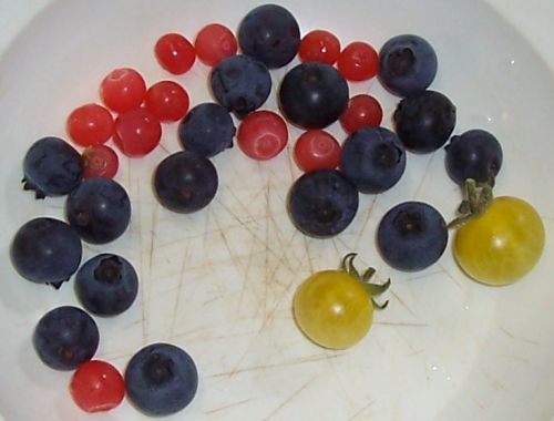 Heute die ersten Brombeeren. Dazu letzte Johannisbeeren, letzte Stachelbeeren, letzte Josta. Das alles zusammen wird jetzt eine wunderbare Beerengelee. Hmmm!