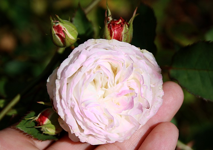 Hast du bei Witzenhausen ein wenig geholfen?Heute blühte noch wieder eine gefüllte weiße Rose aus Blue For You. Schlechtes Bild, aber der gaaanz leichte lila Randeinschlag ist zu erahnen. Nichts atemberaubendes, nur - der Duft!