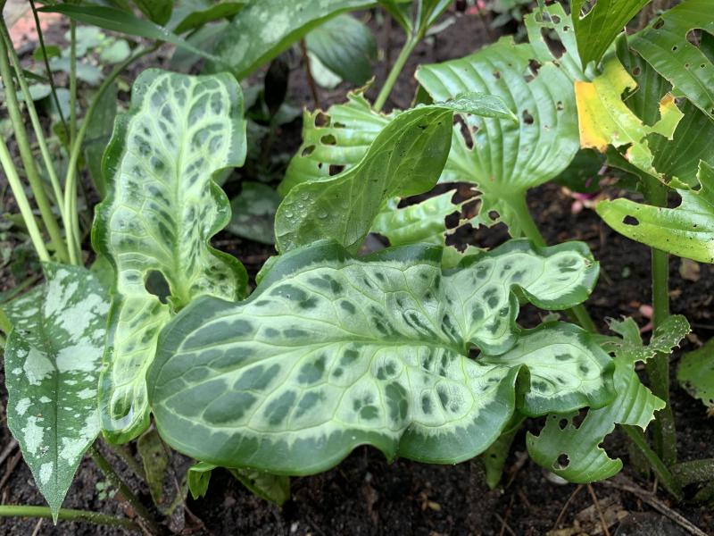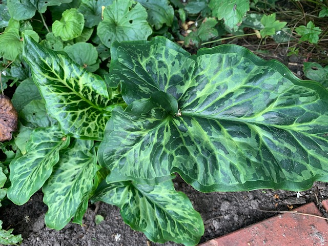 Arum italicum ‚Green Gift‘ ist genau mein Beuteschema. Vielleicht können wir ja tauschen, wenn meins etwas zugelegt hat. Ich habe gerade festgestellt, dass ich mitten in ‚Lady Aron‘ eine Hosta gesetzt habe.