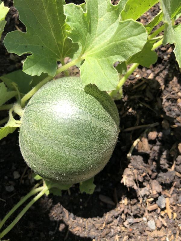 Der Klassiker, die Charentais-Melone fruchtet ziemlich gut und die Früchte sind recht dick. Bekommt man die krankheitsfrei in den August, kann man abräumen. Leider beginnt jetzt der Mehltau.