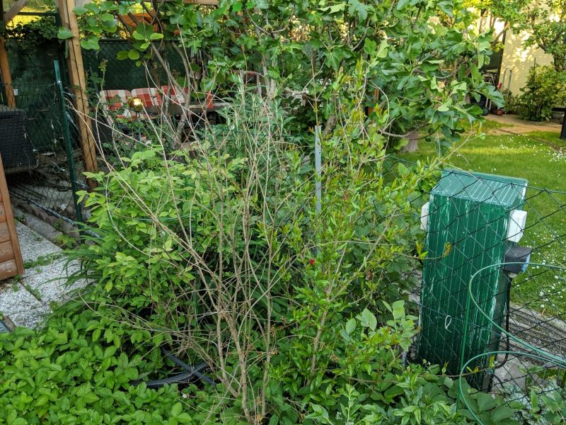 Während meine Russian26 mittlerweile voll belaubt ist, macht mir mein anderer Granatapfel (Sorte unbekannt) Sorgen. Er hat erst an der einen Hälfte wunderschön ausgetrieben, dann sind die Blätter an der Hälfte plötzlich vertrocknet und jetzt treibt nur die andere Hälfte aus. Jetzt ist die Frage ob ich noch zuwarten soll ob die vertrocknete Hälfte noch was tut oder ob ich sie entfernen soll.