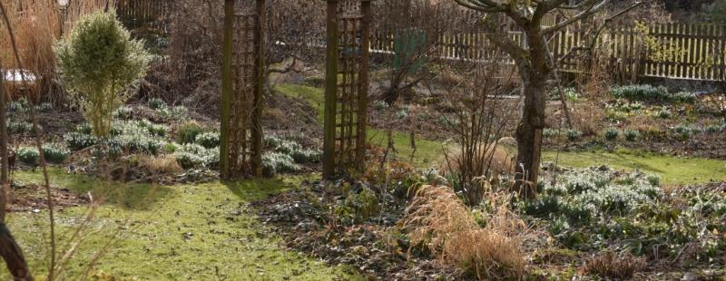 Aber apropos "weiße Wiesen", mein Vorgarten ist zwar noch weit davon entfernt, aber die letztes Jahr unterm Kirschlorbeer gepflanzten Schneeglöckchen haben sich offenbar ganz gut etabliert :)