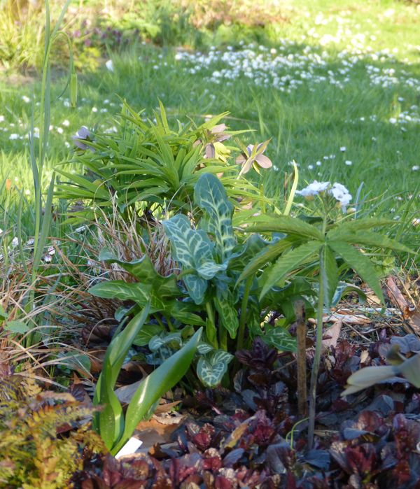 was deine entzückende kleine neuerwerbung angeht, es ist extrem schwer nur nach einem foto eine identifizierung vorzunehmen, selbst für fachleute, ich bin nur ein bischen besser informierter laie. solche gezahnten blätter kommen überwiegend bei den italienischen helleboren vor, aber es gibt sie auch auf dem balkan. die blütenfarbe deutet eher auf balkan, blauviolett kommt bei den italienern nicht vor. einige arten sind extrem variabel, andere wie niger lassen sich leicht erkennen.