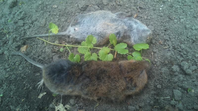 Nachdem sie mir die Hälfte der großen Giftpackung weg gefressen hat, ist sie mir endlich in die Falle gegangen. Ganz offensichtlich sind die Schermäuse hier schon immun. Doch noch während ich die Falle leerte wurde zwei Meter weiter vor meinen Augen gebuddelt und ein blühender Mangold gefällt. Also sind die Tomaten noch immer in Gefahr, unfassbar ... >:(