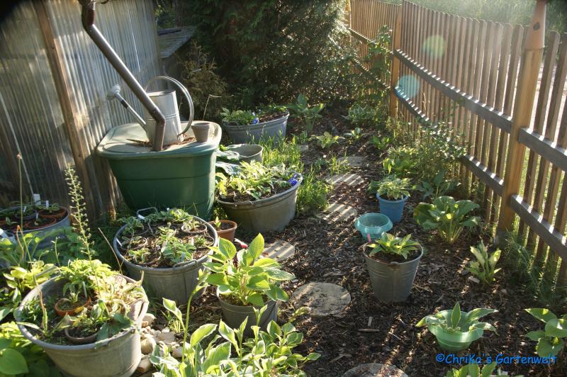 Joga das war diesmal eine einmalige Aktion weil ich Drainage gelegt habe. das waren aber auch 11 Speisswannen und ca.400 Töpfe. Ansonsten mache ich das bei Bedarf wenn ich Ableger mache. Ich dünge mit Pferdeäpfeln, Hornspänen oder Staudendünger was ich gerade habe. Flüssigdünger nehme ich nie. Ich hatte ganz vergessen das ich ja noch einiges an Hostas ausgelagert habe (40) ;D Wanne Nr. 1 seit 2 Jahren bepflanzt