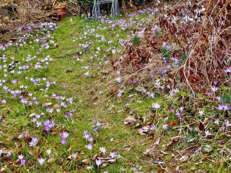 Meine Elfen gehen jetzt langsam dem Ende zu. Hier ein Foto vom 11. März mit meinem "Trampelpfad" zwischen den Krokussen: