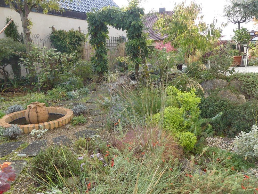 [url=Link zum großen Bild][img]Link zum kleinen Bild[/img][/url]Dein Kiesgarten ist jedenfalls auch zu jeder Jahreszeit ein Hingucker, und Du hast dort so viele Pflanzen, die bei mir überhaupt nicht gedeihen würden, weil der Boden viel zu fett und meistens viel zu feucht ist. Vor allem die Gräser und die vielen graulaubigen Pflanzen sind wirklich schön! Aber so hat jeder Garten sein unverwechselbares Erscheinungsbild, daher finde ich es toll, hier auch von Euch so tolle Garteneinblicke zu sehen. Es sollten sich nur noch ein paar mehr Leute trauen, auch mal Übersichtsbilder zu zeigen, und nicht immer nur Details.