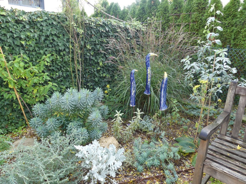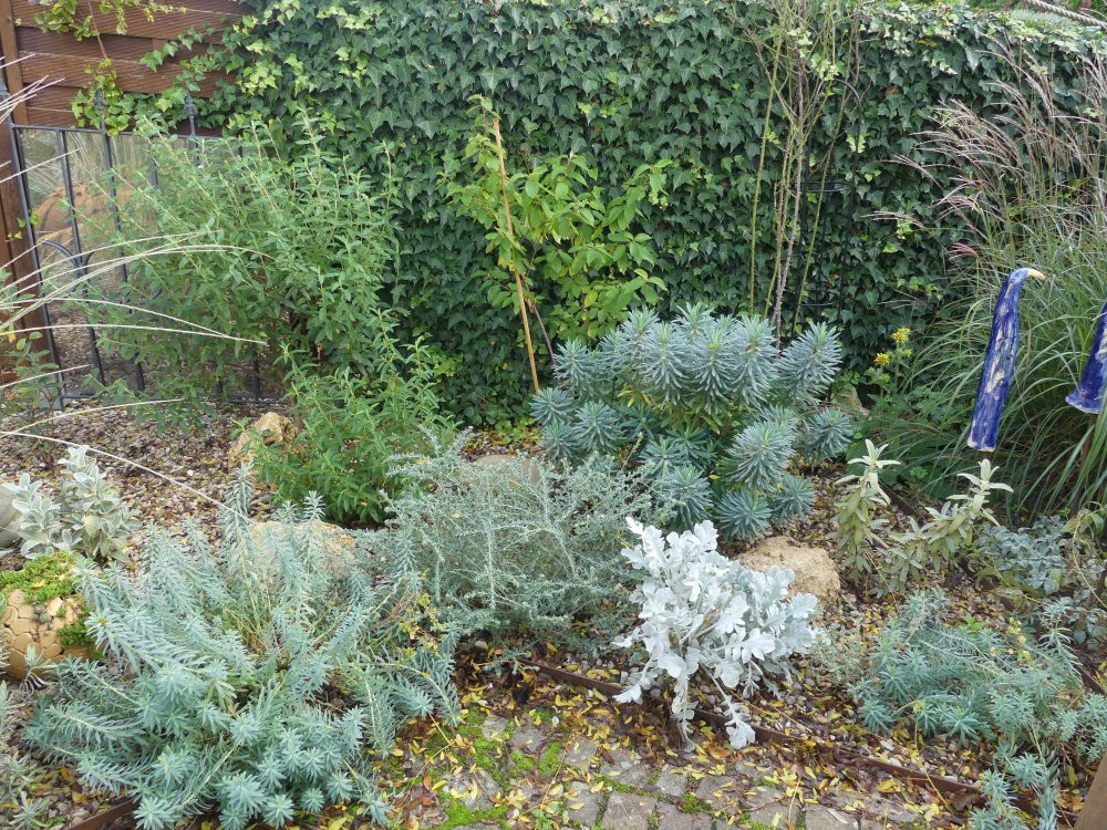 Dein Kiesgarten ist jedenfalls auch zu jeder Jahreszeit ein Hingucker, und Du hast dort so viele Pflanzen, die bei mir überhaupt nicht gedeihen würden, weil der Boden viel zu fett und meistens viel zu feucht ist. Vor allem die Gräser und die vielen graulaubigen Pflanzen sind wirklich schön! Aber so hat jeder Garten sein unverwechselbares Erscheinungsbild, daher finde ich es toll, hier auch von Euch so tolle Garteneinblicke zu sehen. Es sollten sich nur noch ein paar mehr Leute trauen, auch mal Übersichtsbilder zu zeigen, und nicht immer nur Details.