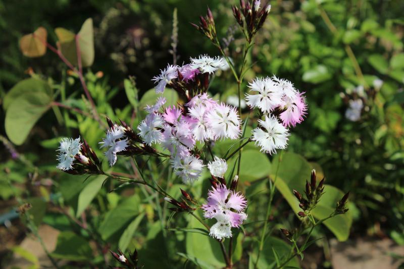 Seit Jahren habe ich eine Nelke, deren Blüten ähnlich wie die von Dianthus barbatus aussehen. Meine Pflanze ist aber staudig, hat sehr dünne grazile Stängel und wird 100 bis 120 cm hoch. vielleicht ist es eine Hybride?