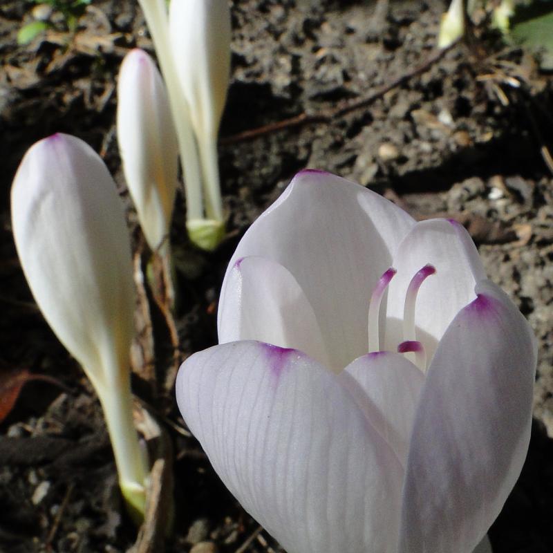 die Namensgebung der Colchicum ist babylonisch ... gestatten wir daher doch einfach, dass ein geliebtes Kind auch mehrere Namen haben darf. Sch... auf die Reinheit der Botanischen Lehre. Anbei die typischen Farbspitzen dieser Sorte, die sie leicht von anderen weißen unterscheidbar macht ...