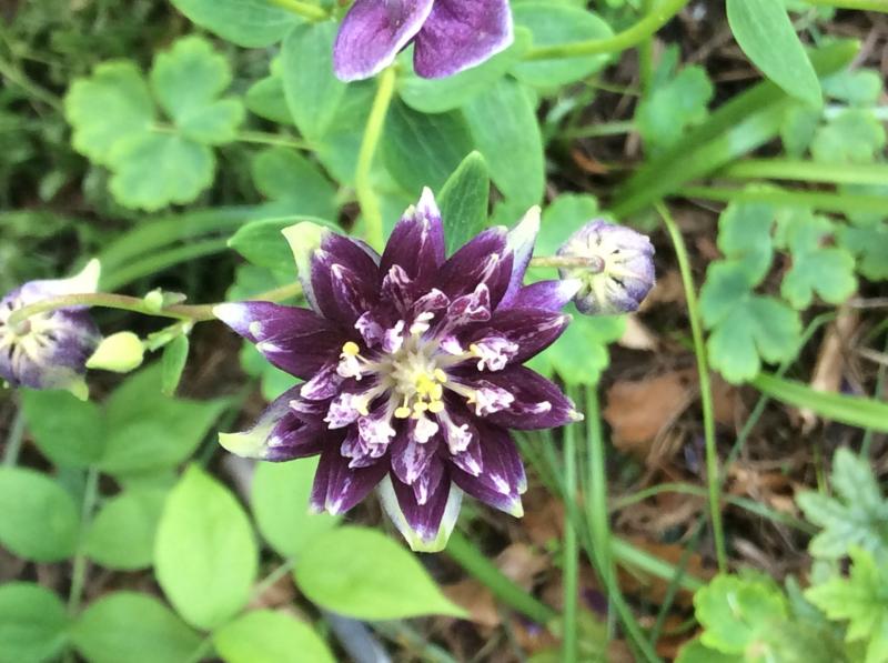 Eine wunderschöne Pflanze, die Akelei. Ich habe weiße. Und jetzt finde ich an weit entfernten Stellen plötzlich Akeleien mit dunkelblauen Blüten. Schön. Aber wo kommen die her?