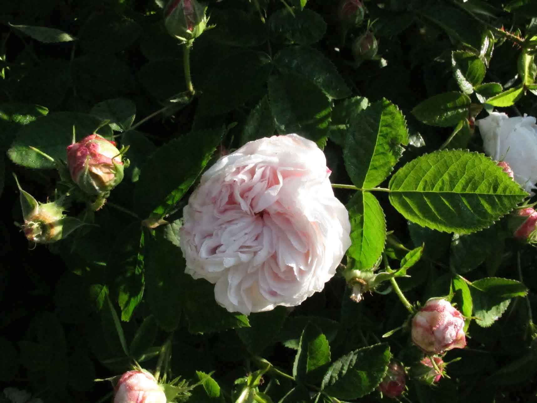 Fantin Latour ist auch so groß wie noch nie, heuer mußte ich so gut wie nicts schneiden. Das hat allerdings zur Folge gehabt, daß die Triebe tw. aufgebunden werden müssen - eine ganz neue Erfahrung