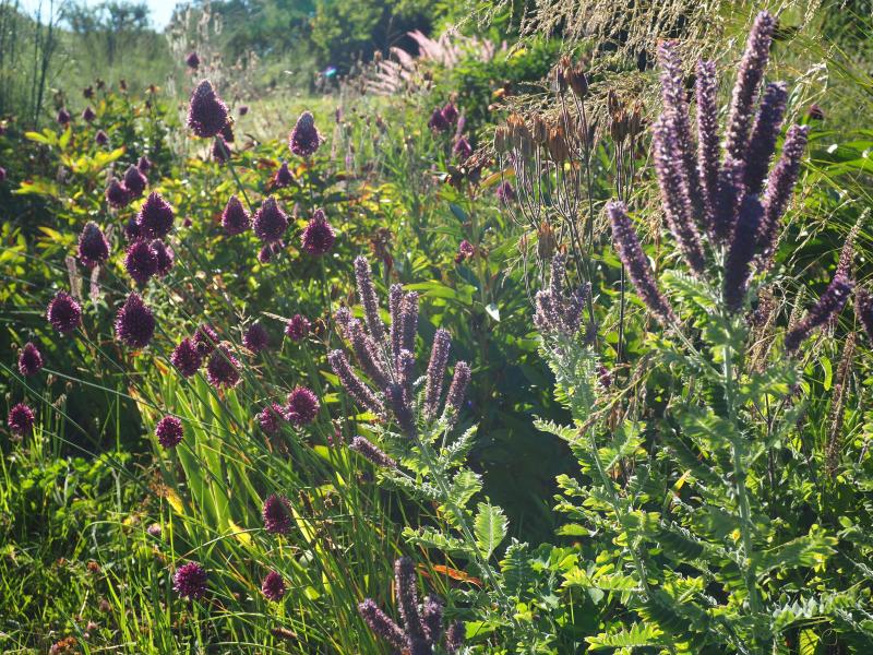 Amorpha canescens und Allium shaerocephalon mit Eragrostis curvula 'Todnes Burgundy'