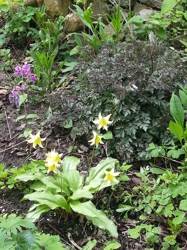 Ich habe vor einigen Tagen mal ein paar Richtungen in meinen halbschattigen bis schattigen Beeten fotografiert. Den Austrieb der Cimifuga finde ich immer wunderschön.