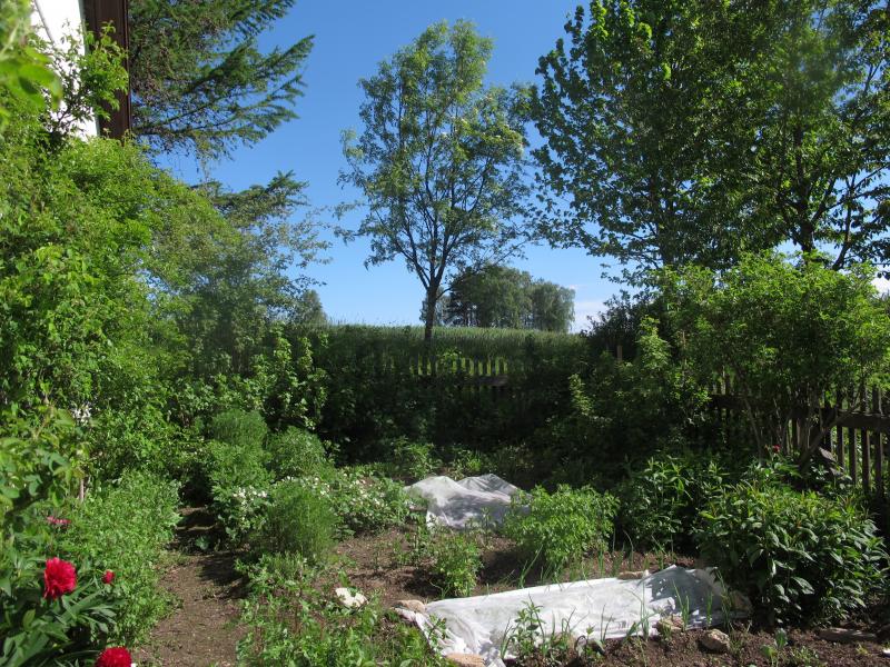 Dem kann ich nur ein paar schnell aus der Hüfte geschossene Eindrücke aus einem vergleichsweise schlichten Garten hinzufügen - es war viel zu tun und die Zeit knapp, wenn grade Wetter und Licht paßten, entsprechend leider die Bildqualität. Jedenfalls - nach vier Wochen Abwesenheit war der Garten ein Dschungel, wenn auch die Pflänzchen im Gemüsegarten grade mal rausschauten. Die Rosen haben tw. dicke Knospen und stehen Dank ausreichend Regen super da, obwohl ich heuer nicht zum Schneiden gekommen bin - eine nicht unwesentliche Erfahrung. Aber davon wird es erst nach dem Sommer Bilder geben, ebenso von den Paeonien :)