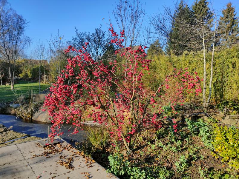 Das ist Malus 'Red Sentinel'. Die Früchte bleiben über den ganzen Winter am Baum hängen. Eines meiner Lieblingsgehölze.