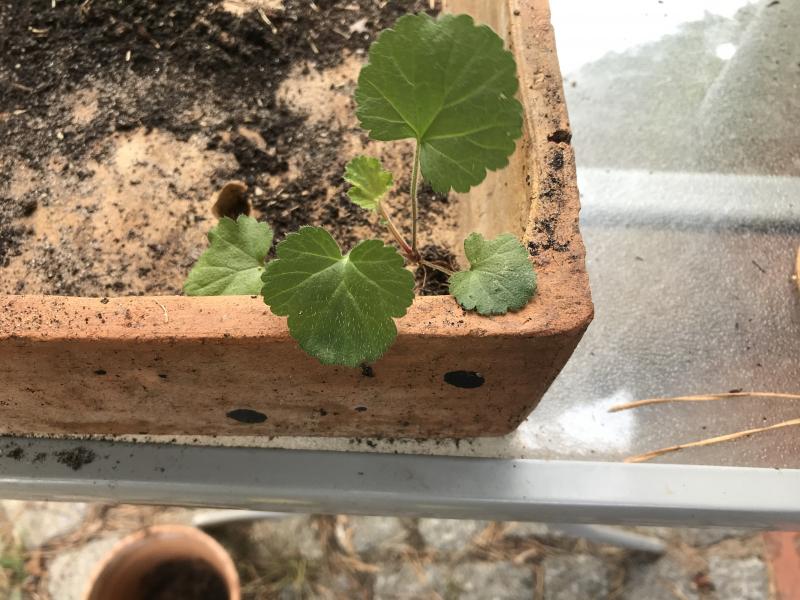 Hier hat sich etwas in einen Topf ausgesamt bzw. kam mit der Erde der darin enthaltenen Pflanzen: ein Erodium? Aber welches?