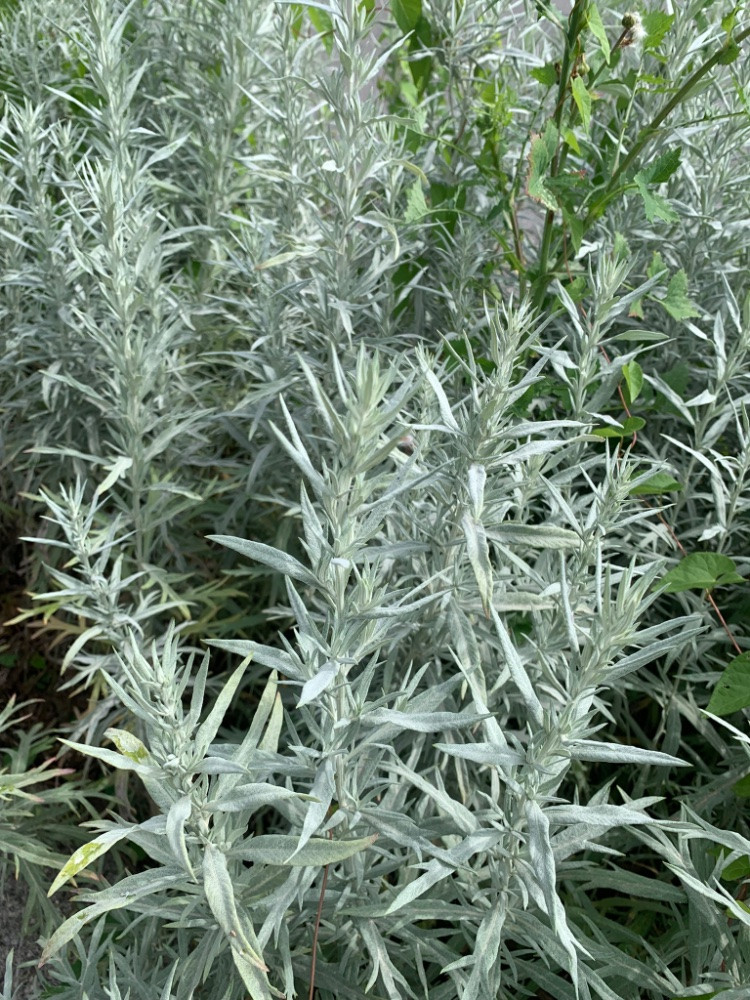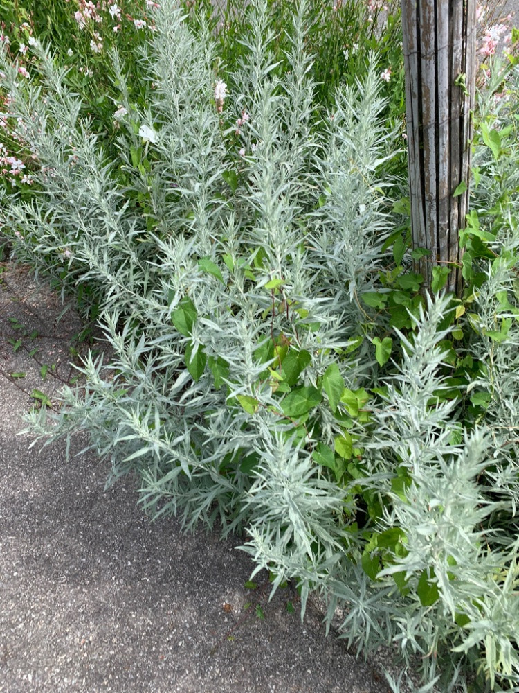 Ich habe Absinthum und dieses Jahr konnte sie unmöglich Trockenstess bekommen, weil es ständig geregnet hat. Die ist trotzdem silbrig. Sehr schöne Pflanze, die auch eine wichtige Raupenfutterpflanze ist. Die hat auch sehr schöne Struktur. Meine Freundin bricht immer wieder die Spitzen ab und die bleiben den ganzen Sommer lang kompakt kugelig