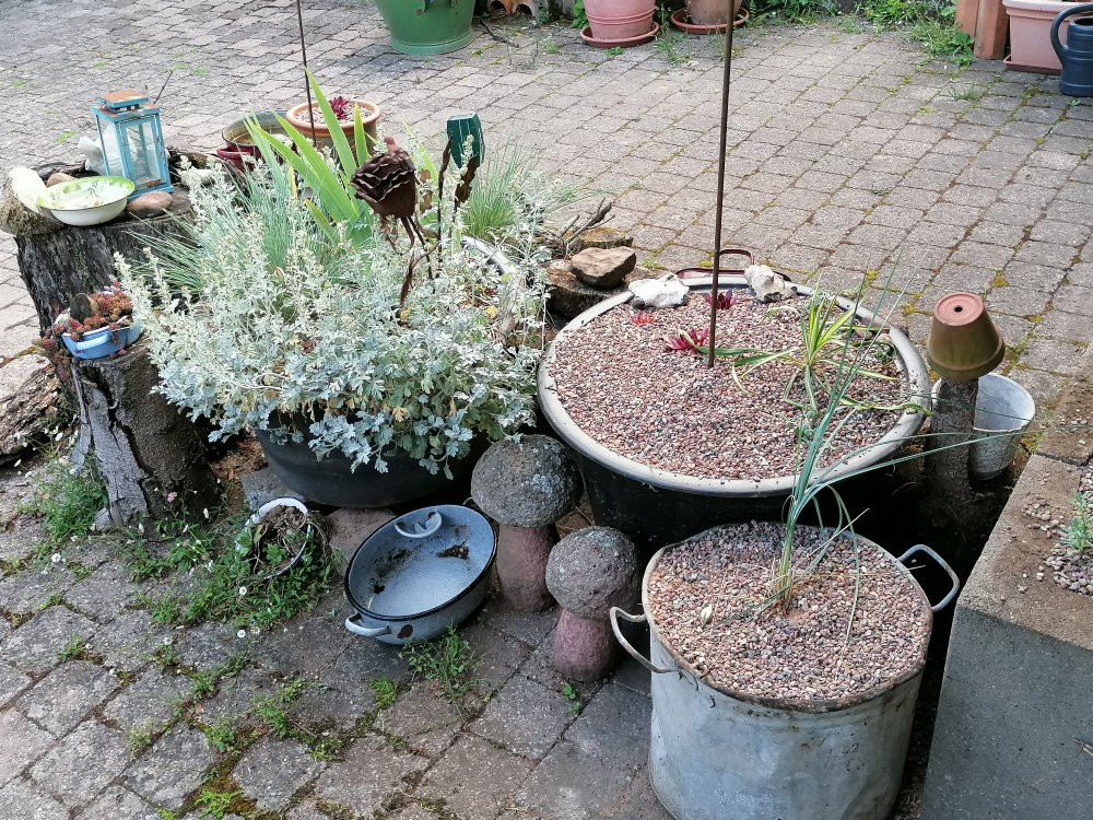 Die Gefäße sind alte Wurstkessel und andere Metallpötte von meiner Oma, Großtante etc. Die haben alles aufgehoben und mir wars zu schade zum wegwerfen