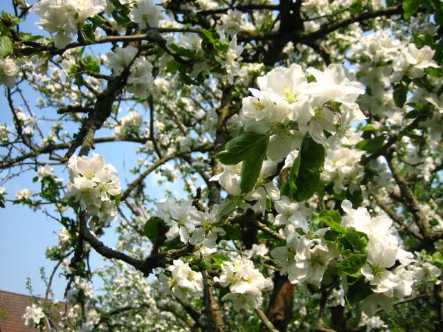 Und natürlich Apfelblüten im Mai (diesmal wegen der langen Kälte ungewöhnlicherweise zeitgleich mit den Birnen, aber die sind jetzt schon wieder vorbei).