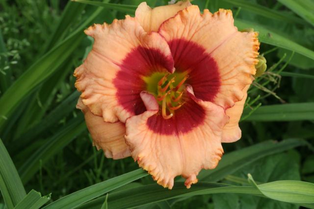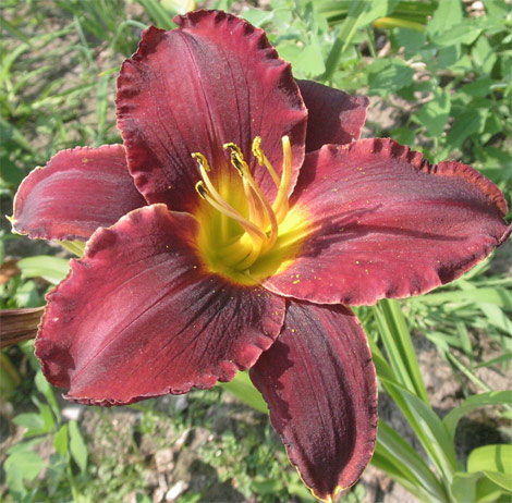 Der Scharzrote ist ja super, butterfly.Bei mir setzt die Trockenheit den Pflanzen im nicht bewässerbaren Sämlingsgarten zu. Die Blüten werden kleiner und öffnen häufig nicht richtig >:(Trotzdem gab es heute früh ein paar EMOs (Early Morning Openers).Dies war heute die allererste Blüte überhaupt an einer gut verzweigten Pflanze.