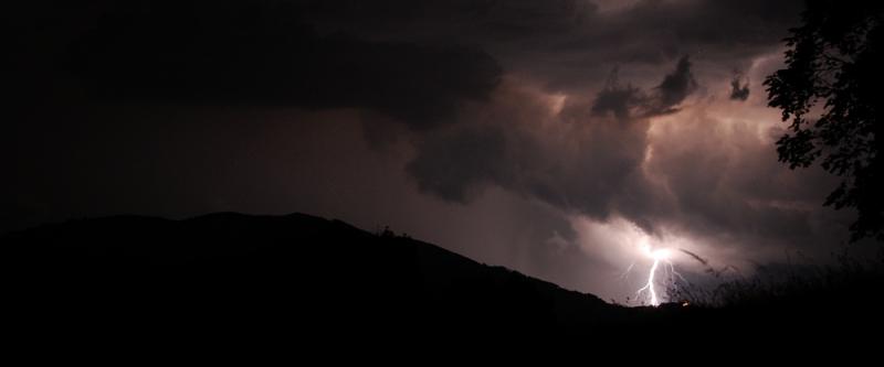 Gestern gab es ein Gewitter und ich bin sogar den Berg hoch, aber leider gab es nur sehr wenige Bodenblitze, dafür viele Wolkenblitze, was schön anzuschauen, aber schwer zu fotografieren ist.Wieder mal habe ich die Blende zu hoch eingestellt (12 - 14), weil ich vermeiden wollte, ein durch einen sehr hellen Blitz überstrahltes Bild zu bekommen. Vermutlich hätte ich etwas variieren sollen... Hm, meine bescheidene Ausbeute...