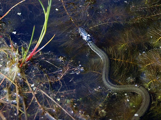 Würfelnatter Natrix tessellataIch wurde vor zwei Stunden darüber informiert, daß ingefähr 200 Meter vor unserem Haus eine Schlange überfahren wurde. Ich habe mich also dort hin begeben und festgestellt, daß es eine Würfelnatter war (ein Weibchen). Sie war aber so plattgefahren, daß ich sie nicht mehr fotografieren wollte.Ich habe jahrelang keine mehr gesehen. Sie steht auf der Roten Liste. Ich hätte mich so gefreut, sie lebend und unversehrt anzutreffen. Wirklich schade um das Tier.