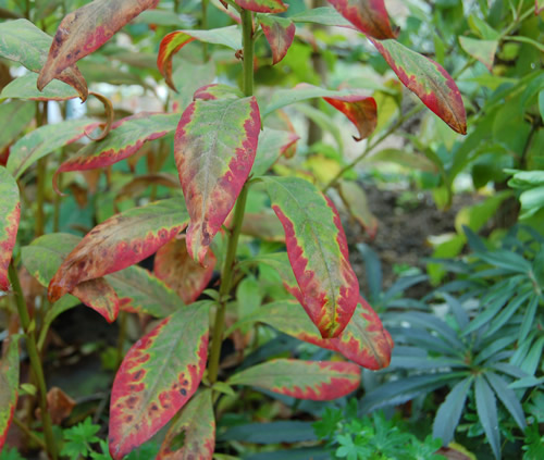 2 unbekannte Paeonia lactiflora verfärben sich auch bei mir schön: