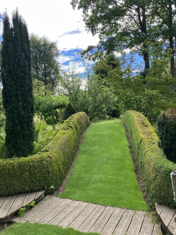 Wenn man reinkommt in den Cottage Garden. So einen perfekten grünen Teppich haben meine Füsse noch nie betreten. ( Der Teppich wird im Moment alle zwei bis drei Tage gewässert.)