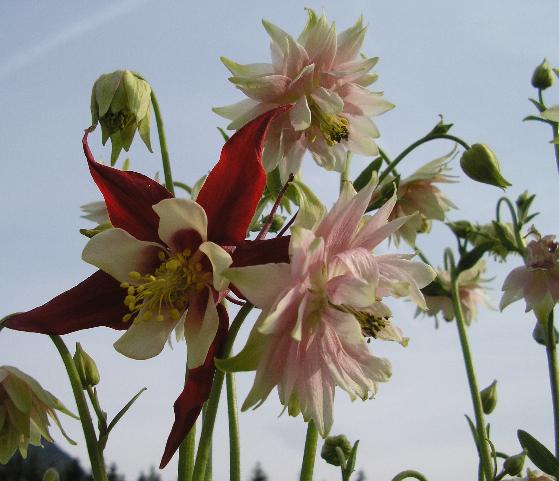 Ist ganz niedlich, dein Bild von der Barlow mit der Crimson Star. Aber für meinen Geschmack sieht das Foto etwas zu romantisch, beziehungsweise verrucht aus?Hier kommt das erste: Aquilegia vulgaris var. stellata syn. clematiflora "Nora Barlow", zusammen mit der ebenso bekannten und oft fälschlicherweise als Hybride bezeichneten Aquilegia caerulea "Crimson Star"