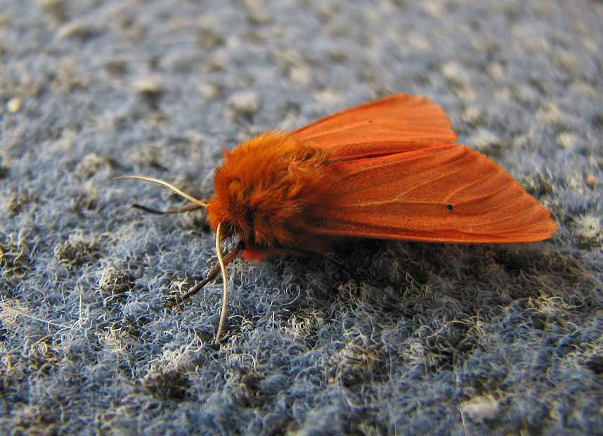 Rostflügelbär, Zimtbär Phragmatobia fuliginosa L.Gehört zu den häufigsten seiner Gattung. Vor natürlichen Feinden wirkungsvoll geschützt und in der Nahrungswahl anspruchslos, setzen ihm nur kalte und nasse Sommer zu. Doch kann man ihn alljährlich treffen, in warmen und trockenen Jahren sogar recht häufig.Futterpflanzen: Brennesseln, Taubnesseln, Löwenzahn und andere Pflanzen.Gruss Christa