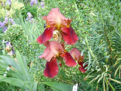 Irisfool schrieb auf bluebells und rosetom Re:Iris Barbata Saison 2007« Antwort #661 "Ich habe grad nach "Arab Chief"gegoggelt, die sieht da aber anders aus"Mit dem Aussehen der alten Sorten ist das so eine Sache. Um das mal zu demonstrieren habe ich zwei Bilder, das eine ist eine unbekannte weinrote neben Papaver orientalis 'Patty's Plum' Farbe passte wunderbar.