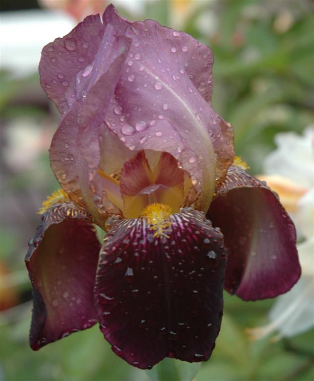 und dieselbe Schwertlilie 3 Tage später bei Regenwetter neben einer braunroten. Patty sieht schon was fertig aus.