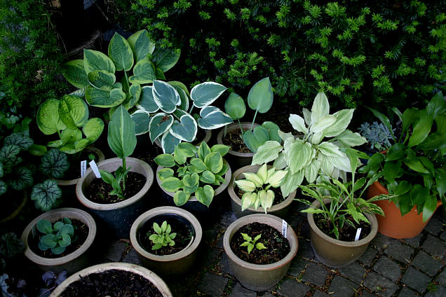 Sehr schön, Elis, gefällt mir gut das Arrangement :DWie heißt denn die helle, gestreifte Hosta oben, zweite von rechts?Du siehst, ich habe sie auch schon in Töpfen![]()