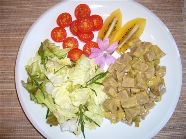 ... es gab, passend zum Wetter :Siedfleisch-Salat, dazu Dinkelbrot