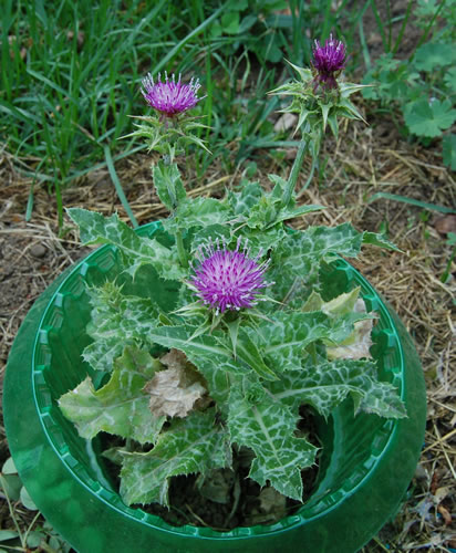 Die Mariendiestel hat letztes Jahr fast einen m2 überwachsen mit einer einzigen Pflanze. Dieses Jahr wollte sie nicht so recht. Ihre Zeichnung ist sehenswert.Silybum marianum