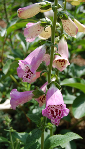 Der Rote Fingerhut mit seinen weissumrandeten dunklen Innenflecken.Digitalis purpurea