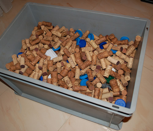 Endlich hab ich die halbe Schachtel mit Korkzapfen gefüllt. Dazu kommen die Deckeli der Milchboxen. 15 Min braucht der Hund im Minimum um sein Futter zu suchen.So, das wärs wieder mal.