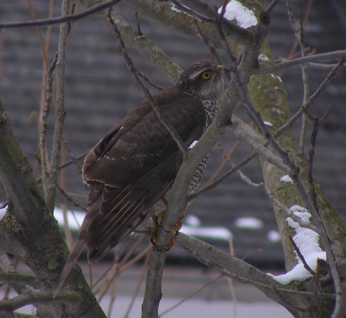 Hallo Zusammen, dieser Gast saß heute am Nussbaum in der Nähe des Vogelfutterhäuschens,bekam aber keinen ab, hübscher Sperber, hat bei uns in der Nähe schon einmal gebrütet...Vlg lisa